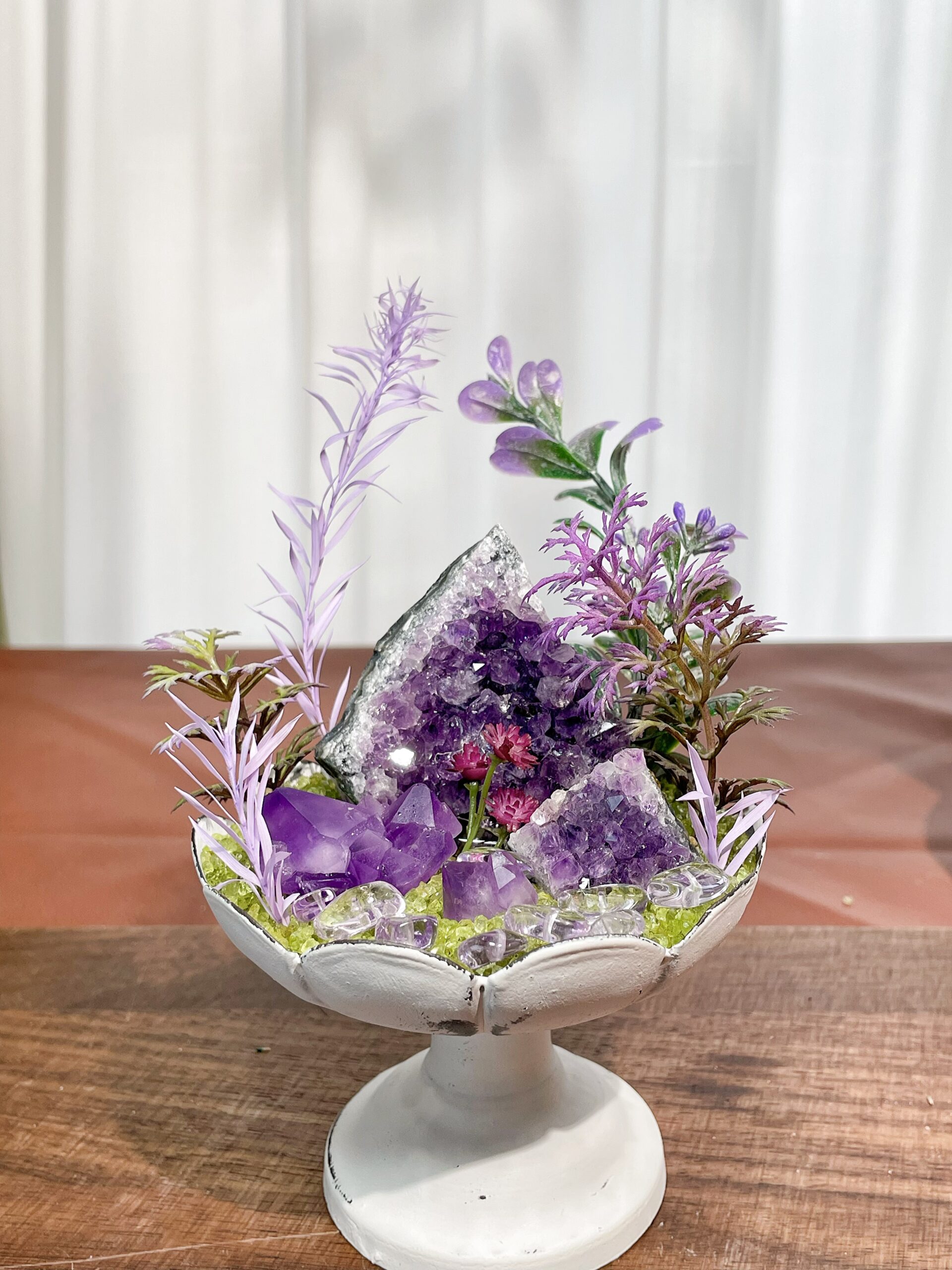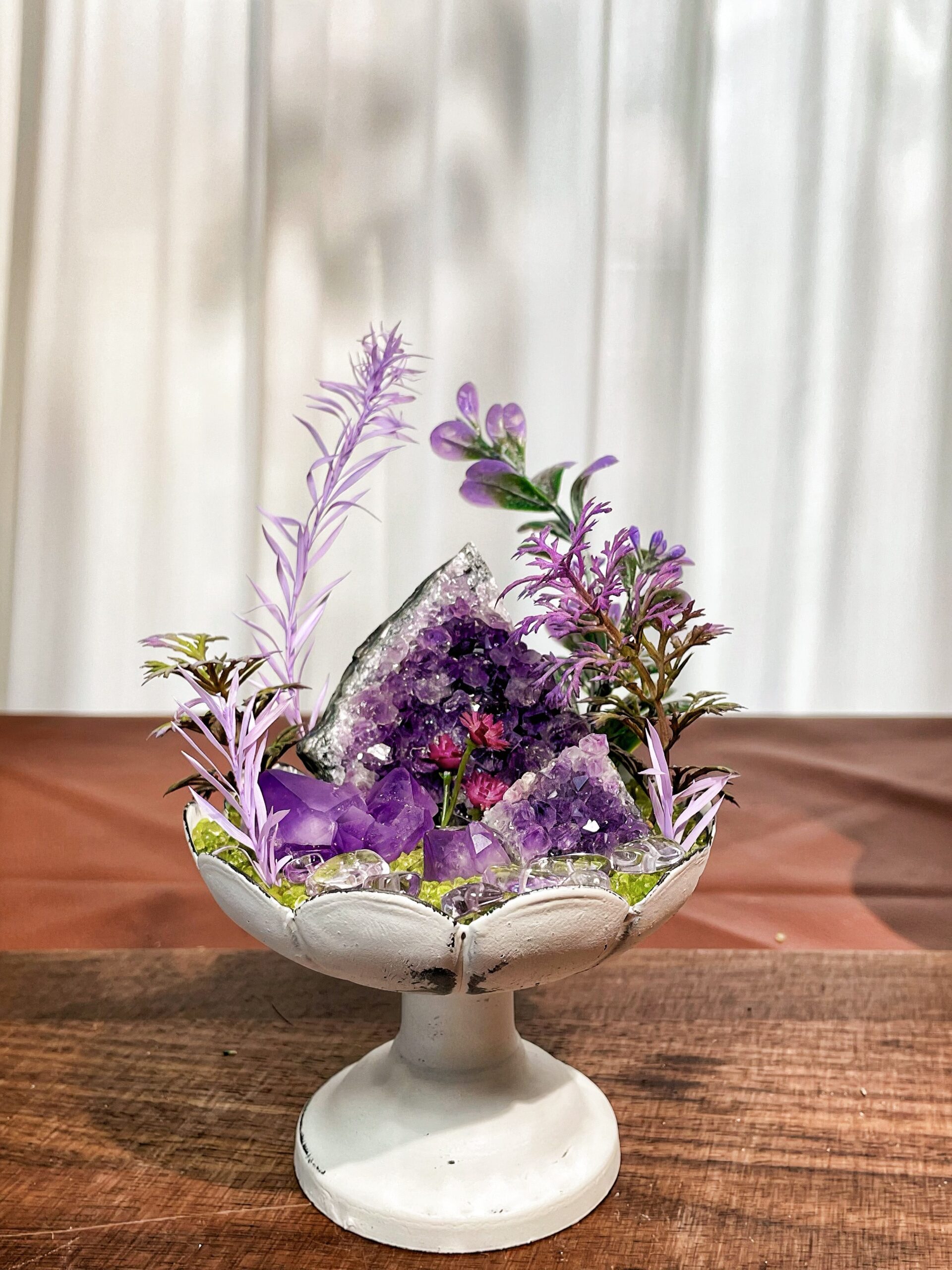 Amethyst Cluster Crystal Planter -Handcrafted Botanical Art